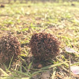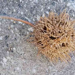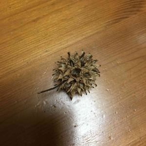 公園にたくさん落ちてました。トゲトゲして、かたいです。枯れ木にたくさんぶら下がってました。