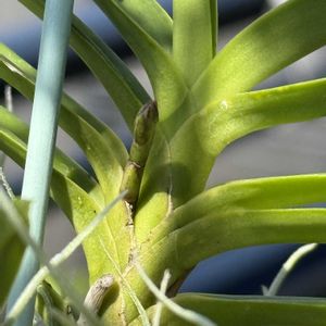 期待の蕾🥰 新しくバンダ グリーンライトの蕾を発見💡 昨年も9月上旬に咲いてますので今頃が蕾の出る頃ですね😊 夏咲きのデンドロやペレイラアラ、ルースネアリーも花芽が分かる様になって来ました🎶 今日は3時過ぎにザッと雨が降り40分位であがりました☔️ こんな雨は大歓迎です😊 ただ午前中に畑とベランダの水遣りは終わってますが😅