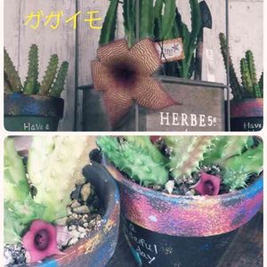 小さくて可愛いお花だったのね〜〜(^ν^) 「スタペリアンサス ピロサス 」 だいぶ大きくなった♡♡♡ 株分けしゃう?(笑)