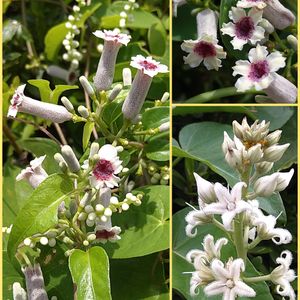 おはようございます😊 生け垣のてっぺんにたくさん咲いていた可愛いヘクソカズラちゃんです🤍💗 少し離れた所にガガイモさん🤍素敵に咲いています🥰 今日のお花ヘクソカズラちゃんです😆💞