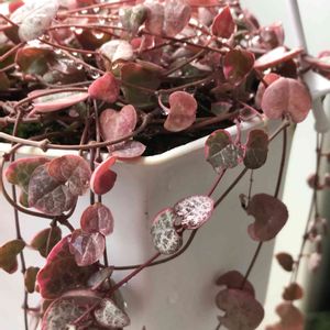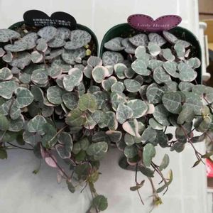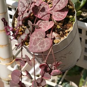 こんにちは~🤗 班入りハートカズラさん💕💖 とても成長が遅いです😅 左側にお花咲いてるけど、種とか出来るのかな?🤔 お水をあげた次の日はピンクが濃い様な?🎶 今GSで班入りハートカズラはレディハートと言う事判明💖