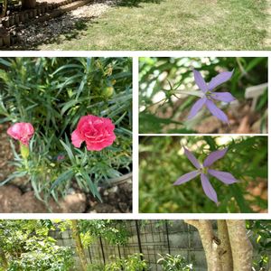 おはようございます😃 私の庭に咲いてる花たちです💐 ①ハマナデシコ(フジナデシコ) 花が沢山咲き出しました☺️ ②シュウカイドウ 溢れて種で沢山発芽して 困ってます😅 ③④ベゴニア これも溢れ種からです☺️ ⑤ハイビスカス・フラミンゴ🦩 挿し木の小さい子達から花が ふたつも咲きました😄