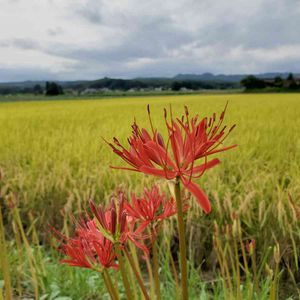 彼岸花 近所の田んぼ道 彼岸にちゃんと咲きますね トンボもたくさん飛んでます 暑さ寒さも彼岸まで と言われますが ほんとにそうですね 最近過ごしやすくなりました