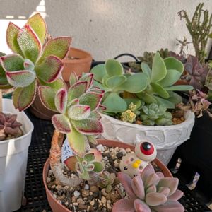 一枚目 🏷️ニャンニャン祭り まともなねこさん出さないところがぼんぼん流✨ 🌵添え多肉 エケベリア属 #ポーラベア 中心部が美しく生え代わって来たよ✨ #ロメオhyb こないだの雨に打たれて 赤黒かったのが薄まってきてて妖艶さ増してきてる😍💕 二枚目 🏷️オヤジ祭り オヤジハーレムにしてみた😂 🌵添え多肉 ハオルチア属 #ウンブラティコラ いちごみるくさん作の鬼太郎鉢に植えて元気にモリモリしてきてるよ✨ エケベリア属 #ジョイ お花みたいなカラーリングでしょ?😍💕 三枚目 🏷️ダンディ祭り 念願の初参加😭😭😭💕 言い出しっぺなのに参加出来てなくてごめんなさい😭😭😭😭😭 2回も乗り遅れて落ち込んでる我が家のダンディ達🤣🤣🤣🤣🤣 🌵添え多肉 アエオニウム属 #ミルクホワイト どこらへんがミルクホワイトなのよなカラー🤣🤣🤣 子株がいい具合に大きくなってきてた✨ センポニウム属 #シエナ 夏にやられて全体的に小さくなっちゃった🥲💦 残るかな……と心配してたからこれだけでも残ってよかった!合格😂💕 カラーも濃い赤に復活よ✨