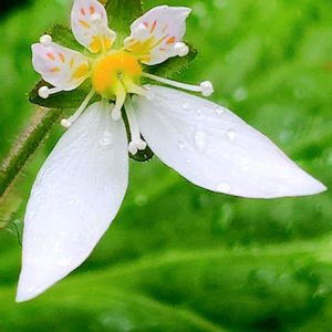 雨があがって庭にでたら草むらの中に白く目立つ花が🤩 ユキノシタの開花一号でした🤍🧡🤍
