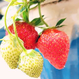 庭のイチゴ❗ 数年前に、二株植えてから、ずいぶん増えました! 孫の喜んだ顔を見るため 鳥害防止のネットを掛け、 甘くなる様に肥料を与えました! 試食させたら合格の様でした😋🎶💕😄