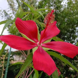お友達からいただいた❤️モミジアオイさん咲きました❤️昨年はいつも見て過保護にしていたのに咲かなくて今年はほっといたら咲いてました❤️不思議ちゃん❤️庭に赤があると、明るく元気パワーもらえます❤️ありがとー、ありがとー❤️咲いたよー🫶♥️