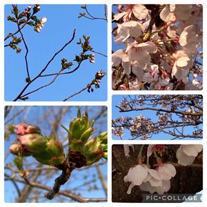 ☆お散歩☆ 公園の桜 4/11日、18時頃撮影 殆どの桜は、散り始め、葉が出始め 今年、最後の見納めかなぁ?と 思いきや、1本だけ未だ蕾の木が あり、なんだか嬉しくなりました〜