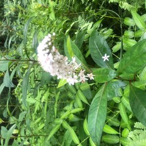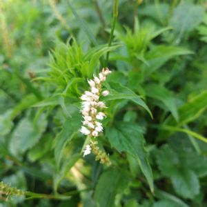 オカトラノオが一斉に咲き出しました。山道沿いに点々とたくさん咲いています、綺麗な花序ですよねえ😍 根元から急激に曲がる花穂と、葉の付け根がふつう赤くなるのが特徴で、ヌマトラノオやイヌヌマトラノオなど湿地を好むのと違って、日当たりのいい草地とかに生えます。 花穂がさらに深く項垂れるように垂れ下がって先が反転もしないのは、ノジトラノオと言います。