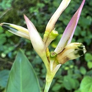 川縁に群生しているヘリコニア 時々見かけるローズ色を やっと撮影できました 2枚目にマクロアップもお届けです🤭