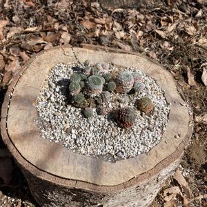 白樺の丸太をくり抜いて切り株風花壇 センペルビウムなら八ヶ岳の冬も耐えられるはず