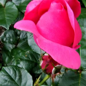 おはようございます☺️夜から雨が降っていて水も滴る鮮やかな薔薇🌹が開花しました〜🌿🌹🌿