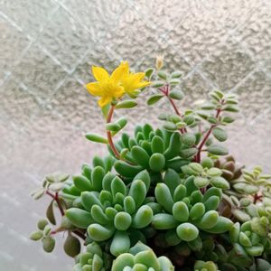 花火のお花が咲きました💛 この子、セダムとかエケベリアとかで売られてるのを見ますが、お花はセダムっぽいかな(*‘ω‘ *)? セデベリアの可能性もあるかな(´•ω• ก`)?? pic③前回投稿した葉挿しを植え替えしました!! pic④オリジナルの子も広げて植えました✨ pic⑤遊んでみたよ🩷 我が家で生まれた赤ちゃんなのでベビーカー?に植えてみました(*´罒`*)♡