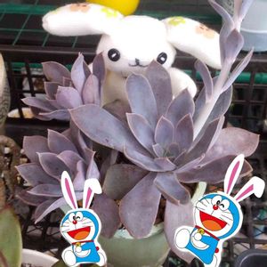 こんにちは☔ 今日もよく降ってます😣 りなははさん主催の 🏷毎月3日は耳の日 🏷ドラえもん誕生日 に参加しま〜す🤗 植物は多肉ラボⓒの里親募集でリトセアさんから頂いた澄絵さん💜 だいぶ大きくなって花芽も伸びてます⤴️ まつぴよさんのチビうさちゃんꪔ̤̮*.˚ そして今日はドラえもんのお誕生日だそうで家の中探してみたけど無くて💦 この画像になりました💦 ドラえもんにもウサギになって貰いました😆