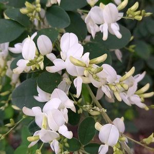 今日のお花、ハギ🤍🌿😊 シロハギ シラハギ (落葉低木) ミヤギノハギの変種で、白い花をつけます。高さ1〜2m。全体に絹状の伏毛があります。葉は3出複葉で互生します。小葉は長さ2〜6cmの楕円形又は長楕円形。別名シロバナハギ。花期は7〜9月。 学名は、Lespedeza thunbergii subsp. thunbergii f. albiflora マメ科ハギ属