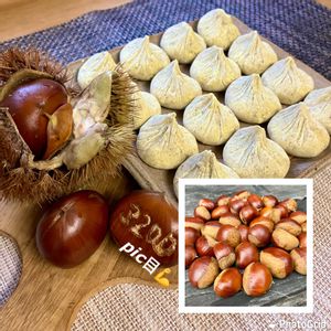 番外編 🌰栗きんとん🌰作りました 1️⃣生栗水洗いして鬼皮のまま鍋に入 れ水から茹でること40〜50分 2️⃣鬼皮を半分に切りスプーン🥄で栗🌰を取り出す 🤚🖐️手がめちゃくちゃ😖しんどかった 右手の中指が硬直(こわばる)するほど 辛かった😭 3️⃣潰した栗とグラニュー糖を入れ 中火で火にかけかき混ぜ続ける 4️⃣ラップに丸めた栗を30〜36gずつ包みました (25g が普通の大きさです) ギュッと絞り 形よくする💪チカラが残って無かった😫 …ので 🌰栗きんとんとは言えないただの🌰栗団子になりました😅 栗の粒が少し残るくらいに仕上げました おしまい🙋🏻 今年もたくさんの早生栗 🌰🌰🌰🌰🌰🌰🌰を頂きました ありがとう🙏🙇♀️