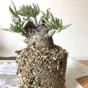 新入りさんの紹介 昨日お迎えしました。 まだ日本に来て間もなく、冬型なので秋まで動かないそうです。。 チレコドン・ペアルソニー まだ直径4cmほどですが、元気に育って欲しいです。