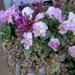 パパーっと定植出来ず、悩みながらの組み合わせ😆その時間も実は楽しかったりするのですが🥰 待機苗がまだまだパンビオだけで20苗あります💦💦💦 今週中に何とかしなくては😫 渋い寄せ植えが今シーズンのマイブームみたい❣️ ZaijinViolaパピエ渋茶&神戸べっぴんさんの異邦人シルバードアズと幻夢