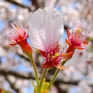おはようございます いつもの散歩道の公園のソメイヨシノは散りだしました 花びらが散った後の桜しべが綺麗です まだ木には 蕾 咲いたばかりの芯が白い桜 もうすぐ散る準備が出来た芯が赤みを帯びた桜 数枚花びらが残った桜 桜蕊(しべ) 葉桜 色々な桜の人(桜)生が一本の木に見られます やがて花は散り 少し桜色に染まった葉桜に装いを変えますね 明るい朝を迎えました 今夜から下り坂になり雨になります 花散らす雨 それもまた自然 咲いても散っても落ちても美しい桜花 花を待ちわび 花を名残惜しまれる桜花 桜花って幸せな花かもしれないな 今日も良い日になりますように