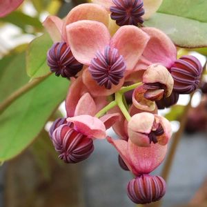 おはようございます 散歩道のアケビの花です トップ画面の赤紫色の花は雌花 小さな紫色の手毬のような蕊の花は雄花 いつもの散歩道に今年も蔓を伸ばして可愛い小さな花がたくさん咲くようになりました ブドウの房のようになった花たち 風にユラユラ揺れています たくさん花が咲いている場所なのに 私はアケビの実を見たことがありません 今年は見てみたいな 朝は肌寒いです 日中は初夏の陽気になるらしいですね 気温差にお気をつけくださいませ 今日も良い日になりますように