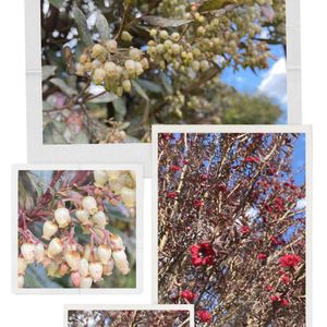 イチゴの木(ストロベリーツリー)とギョリュウバイのお花🤍🌿❤️🌿 ウォーキング🚶♂️🚶で見ているお花です。 イチゴの木のお花は初めて見るお花です🥰 🍋🌱🍋