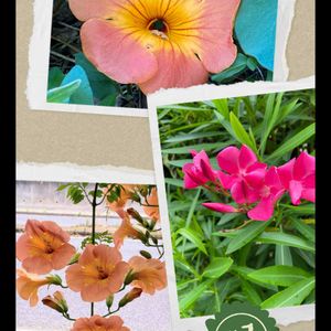 お出掛け、ウォーキング🚶♂️🚶で見かけたお花です。 ノウゼンカズラ🧡🌿とキョウチクトウ🩷🌿 こちらの☔️梅雨はいつ明けるのでしょう? 真夏のようなお天気が続いています☀️ 🍋🌱🍋