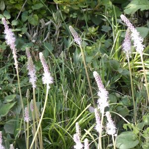 おはようございます😉 花茎の先に、5cm位の長さの淡いピンク若しくは薄紫の、穂状の花🌸を咲かせます。今迄ずっと気づかずにいました😭 主人の実家の庭より