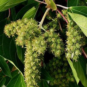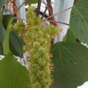 アカメガシワ 先日upしたアカメガシワ。 アカメガシワは雌雄異株なのでこちらは雌の花後の姿です。 もう果実を付けていました。 熟すと種子は黒くなります●