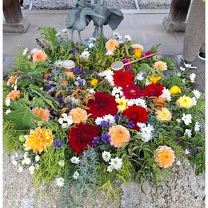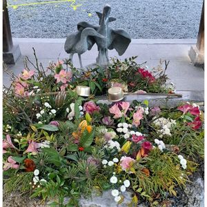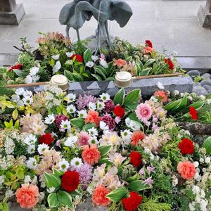 白鷺神社⛩️様の花手水 この日は、犬の御朱印が始まったので沢山の方々&🐶 400枚が1日で終了したとかInstagram👀