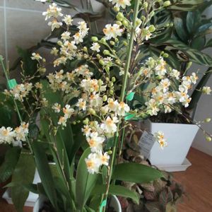 白い星型⭐️のお花が連なって咲くグルマセウムが満開になりました😆💕 ふわっとしたお花に甘いバニラの香り🍨 地味だけどかわいい🥰 次に咲くのはラババーストかな♬ 今年はちょっと日に当てすぎて葉っぱの色が抜けちゃったけど立派に育ちました☺️💕 タケノコちゃんは日に当てすぎたら葉っぱが焼けて早く落ちちゃったから小ぶりで花数も少なめだけどこのまま咲いてくれそう‼️ ここまできてシケらさないように気をつけてます😅 オンシジュームも蕾たくさん✨ こちらは気を遣わなくても逞しく蕾が伸びてくれるので私にはあってるみたいです🤭