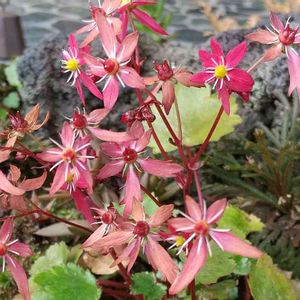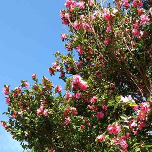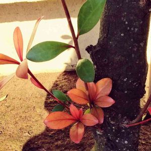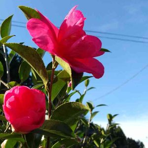 お店の玄関前に続く通路脇にサザンカが数本、綺麗に咲いていた。 進んでくと根本に可愛い葉っぱ🌱。何だろう?花? 調べたらモッコクの新芽のようです💛