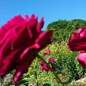 青空に向かい 背筋をピーンと伸ばし 咲いていました こんな風に 生きていきたいなぁ (^-^) あれっ!ちょっと 斜め↖に なってる花も😅 人生 色々😱 思うようにならない事もあるさ(*^^*)💕