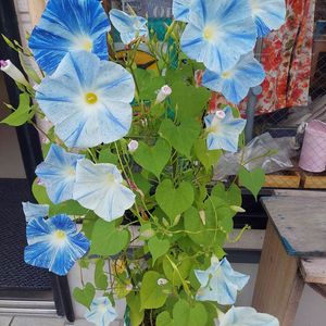 開花4日目にして、初めて手で開くお手伝いしなくても開花しました🤣 今日は6輪咲いてました😆 この朝顔の介護職は解雇されるかもな🤭