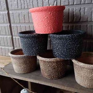 リメ鉢(カラー土鉢) ベースは土仕様 縁は凸凹仕上げで綺麗なカラー!