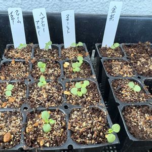 最初から用土に蒔いて冷蔵庫管理していたビオラたちが発芽してくれている。このまま枯らさずに成長させたい。一方でカルメナエが機嫌よくしているし、金豆が花をつけた。どうかこのまま、猛暑が戻らない事を願ってやまない。