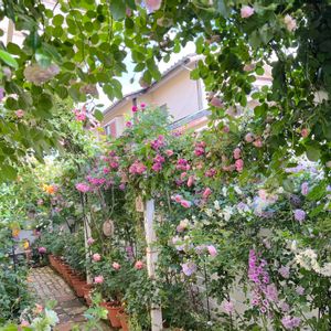先日の大風でベランダのサンダルが飛んでいって無くなったんだけど…フィリスバイドのアーチの上に片方だけ見つけました🩴 もう片方どこ行った🤔