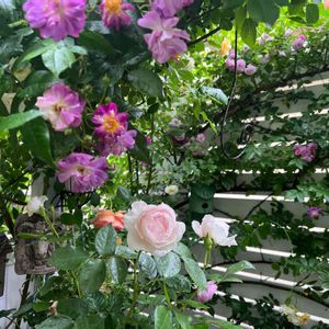 おはようございます 昨日からまだ雨が降り続いております😓 picは芽衣 毎年シュートや枝が伸びすぎて大変なので今年は肥料を控えたので葉もお花も少なめ…このくらいの方が管理は楽かもですね😅 今年の寒肥量を忘れないようにメモメモ📝しておこう‼️