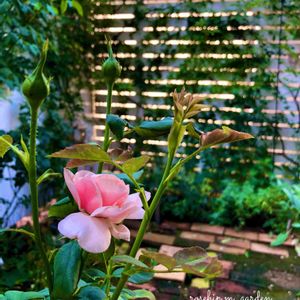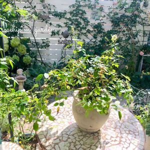 . 안녕 . 朝から30度超え〜(>人<;) . 日差しがあたらないうちに庭パト . 少し風が強めかなぁ〜⁉️ . ナエマさん、たくさん蕾つけてるのよ〜 . 咲かせたい… . 一輪でもいい香りがします( ´∀`)♡