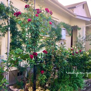 2階ベランダから… . 左手前はピエール . 下からじゃ花の表情見えなくて💦 .