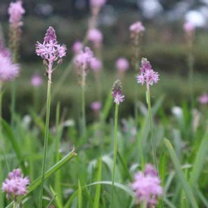 かわいい花 ツルボ 咲く ニラに似た長線形の葉 淡紅紫色の星形6弁の小花を 多数穂状に開く 別名 サンダイガサ 参内傘 公卿が参内するときに傘を たたんだ形からきたという (´・∀・)