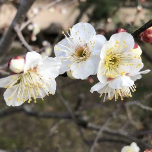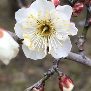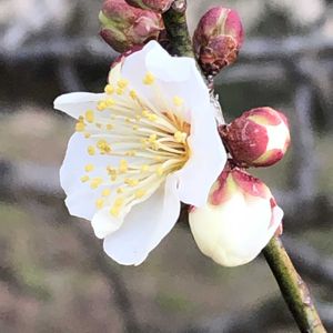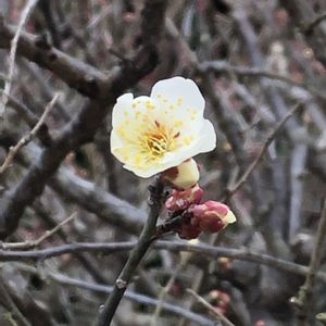 白いお花、ウメ「冬至」をパチリ!📸🌼😄👌 昨日、立春の日は1輪のお花でしたが、今日はたくさん咲きだしました。🌞✌️
