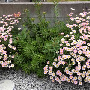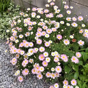 去年の春に挿し芽したマーガレットちゃんが大きくなって満開✨✨✨ アルストロメイアさんを挟んで1株ずつ❤️❤️❤️