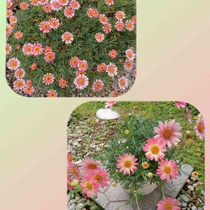 上が親株のマーガレット💮下の方が木質化して、お花は多いけど小さめです😆👏 下は挿し芽でここまで大きくなりお花がやっと咲きました🙆花色が可愛い💕💗