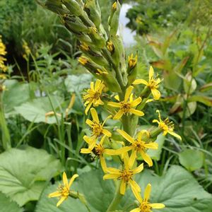 オタカラコウ 雄宝香 谷川に咲いている 水辺の水曜日🏷️ ツワブキの別名であるタカラコに葉が似ていることからの命名という説もあるが、虫たちが寄ってきて葉がどんどんボロボロになっていく。 オタカラコウだけれどもメタカラコウ属(^^;