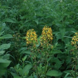 なるさん投稿のマルバダケブキかと思っていのに、咲いてみたら違うみたい!花の咲き方はオタカラコウのようでもありますが、何の花でしょう? 姉の一言でオタカラコウと判明しました。