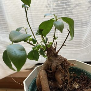 ガジュマル 見切り品コーナーにいた弱々しいガジュマルを救出しました☺️ 元気にわさわさに育てるぞ‼️ 6月に救出したガジュマルが 今、②③枚目の写真のように復活しました♪♪♪ お迎えした頃は④枚目のように枯れ枝でした。 すごいぞ👍ガジュマル😍