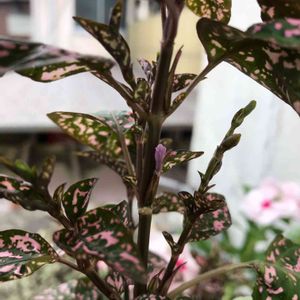 ヒポエステスに花がっ!!! 会社の寄せ植えに、 ヒポエステスがあるのだけど、 毒々しい模様が、 実はあまり好きではないのだが、 好き嫌いの問題ではなく、 花をつけているではないか〜❗️