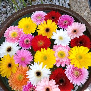 おはようございます☺️✨ 🏷️今日のお花 ガーベラ ①②のお花は お出かけ先にて ①花手水 2024.5/10pic ガーベラ 色とりどりなのが 入ってました ②ガーベラ 2024.2/11pic イキイキした色合い どれにしようかな😘✨ ☆キク科 ☆多年草 ☆花言葉 希望・前向き 常に前進 我が家のお花 ③④⑤ モッコウバラ💛 昨日から ちょっと🤏ずつ 淡い黄色い小さな花が 咲き掛けました🤭 ☆バラ科 ☆常緑つる性低木 ☆花言葉 初恋・素朴な美 純潔 🏷️2021年同期の会No.8 🏷️白輝美人🤍 🏷️心にメローイエロー💛 🏷️桃色百花繚乱💖 🏷️紛紅駭緑💗 🏷️太陽がくれた季節a☀ 参加させて 下さいね🐰💗