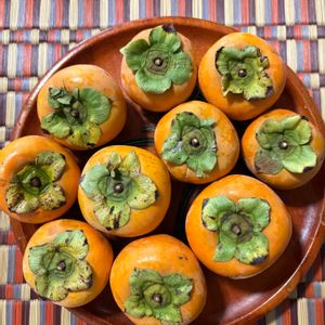 ロウヤガキ(老爺柿)だそうです🍊 お隣さんの庭で可愛らしく色づいていました🧡