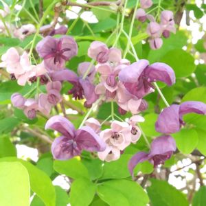 おはようございます😊 今日のお花アケビ💟💗 4月に庭で咲いていたアケビのお花と、 先日貰ったアケビの実🫒 秋にこんな野生味のあるゴツゴツした実が生るなんて想像できないぐらい、かわいいお花が春に咲きますね💗